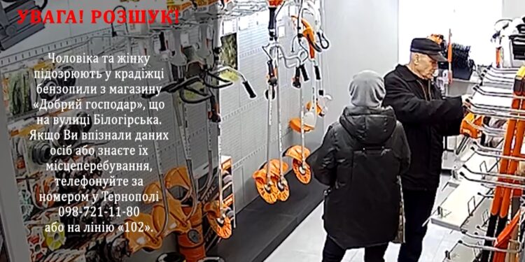 Оголосили у розшук зловмисників. Поліцейські Тернополя розшукують чоловіка й жінку, причетних до крадіжки.